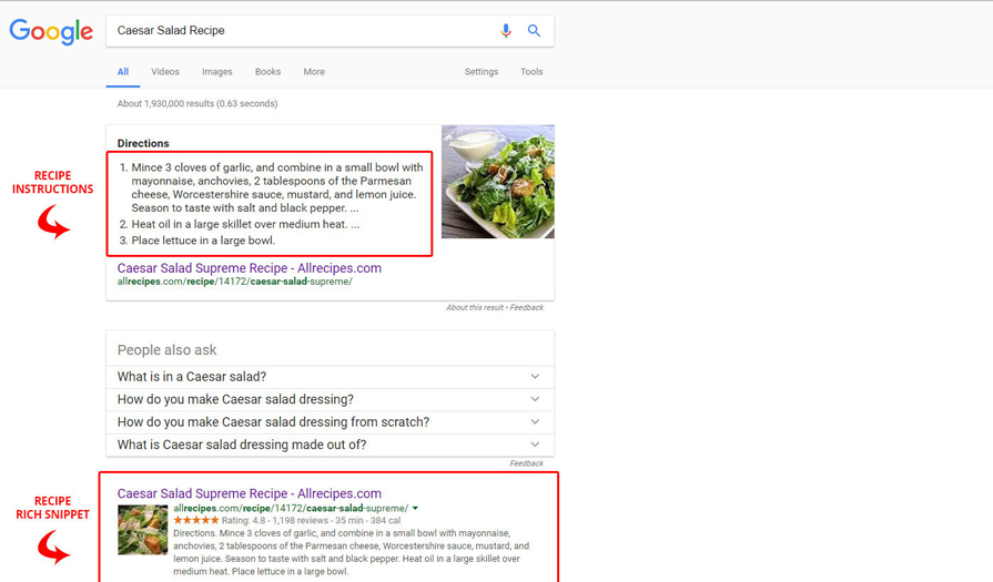برای دستور پخت غذاهای خود کارت های غنی ارائه دهید، مانند امتیاز کاربران، زمان پخت و پز و آماده سازی.